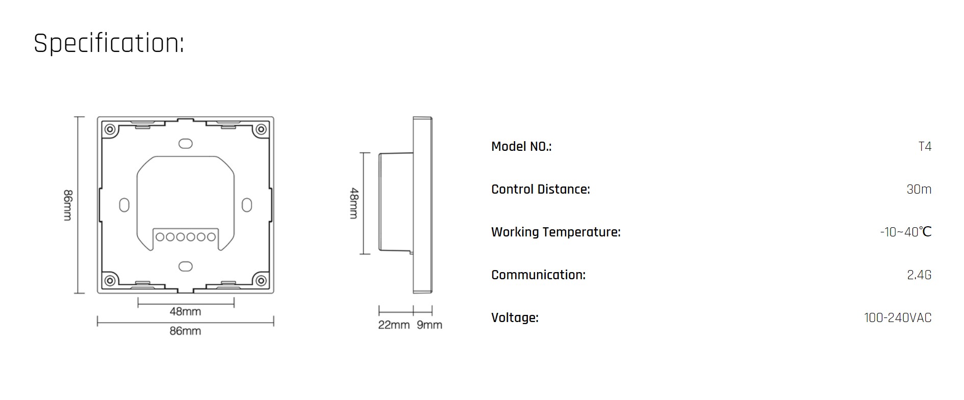 Dotykový ovládač RGB+CCT Mi-Light vypínačový 4kanály