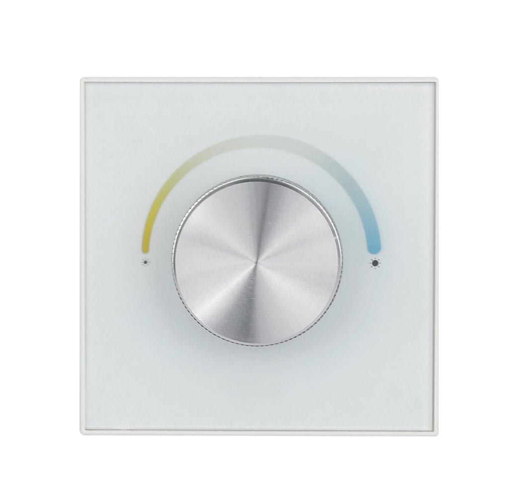 Dálkový ovládač bílý pro ovládání jednobarevných nebo CCT LED pásků nebo LED svítidel. Montáž do krabice vypínače. Dosah 20-30m.