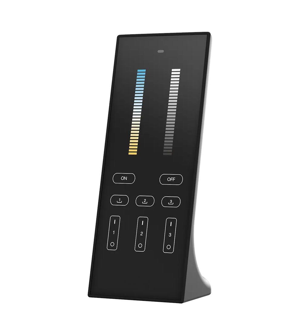 Stolní dálkový dotekový ovládač černý se 3mi zónami a 3mi scénami pro nastavení nejpoužívanějších scén. Ovladač je vhodný pro CCT LED pásky nebo jiná CCT LED svítidla.