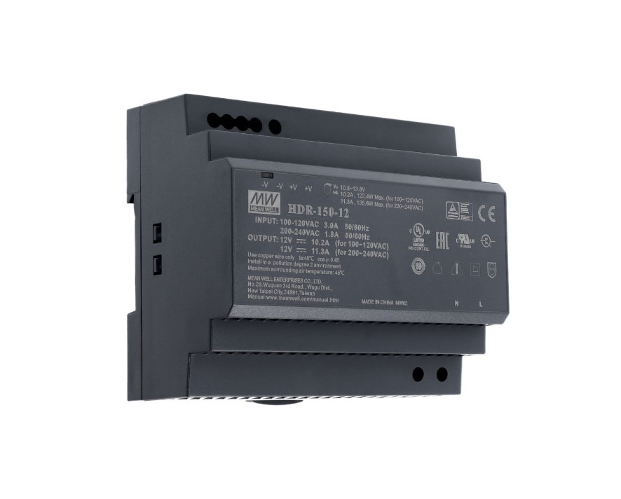 Profesionální zdroj s vysokou spolehlivostí pro montáž na DIN lištu do rozváděče. S výkonem při 12V 135W.